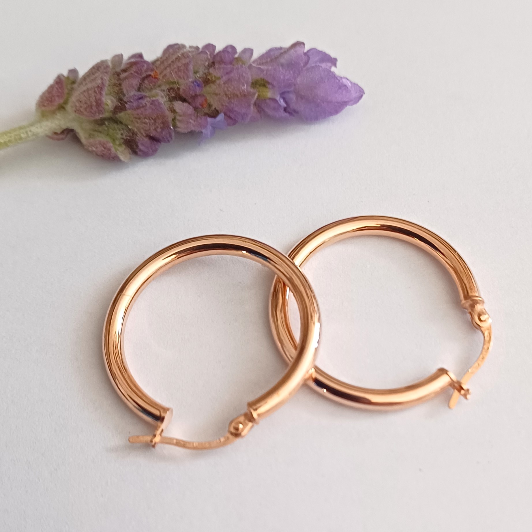 These light weight round-shaped hoop earrings are made from 9ct rose gold. They are imported from Italy, making them of exceptional quality. They are a classic to wear to any function, depending on your outfit. They can be both elegant or a casual everyday wear option.